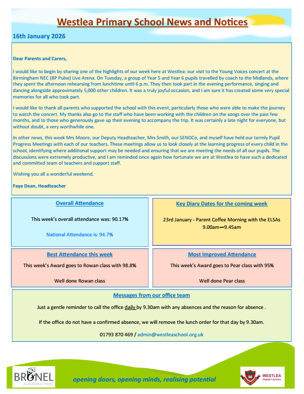 Westlea School Newsletter 16.01.2026